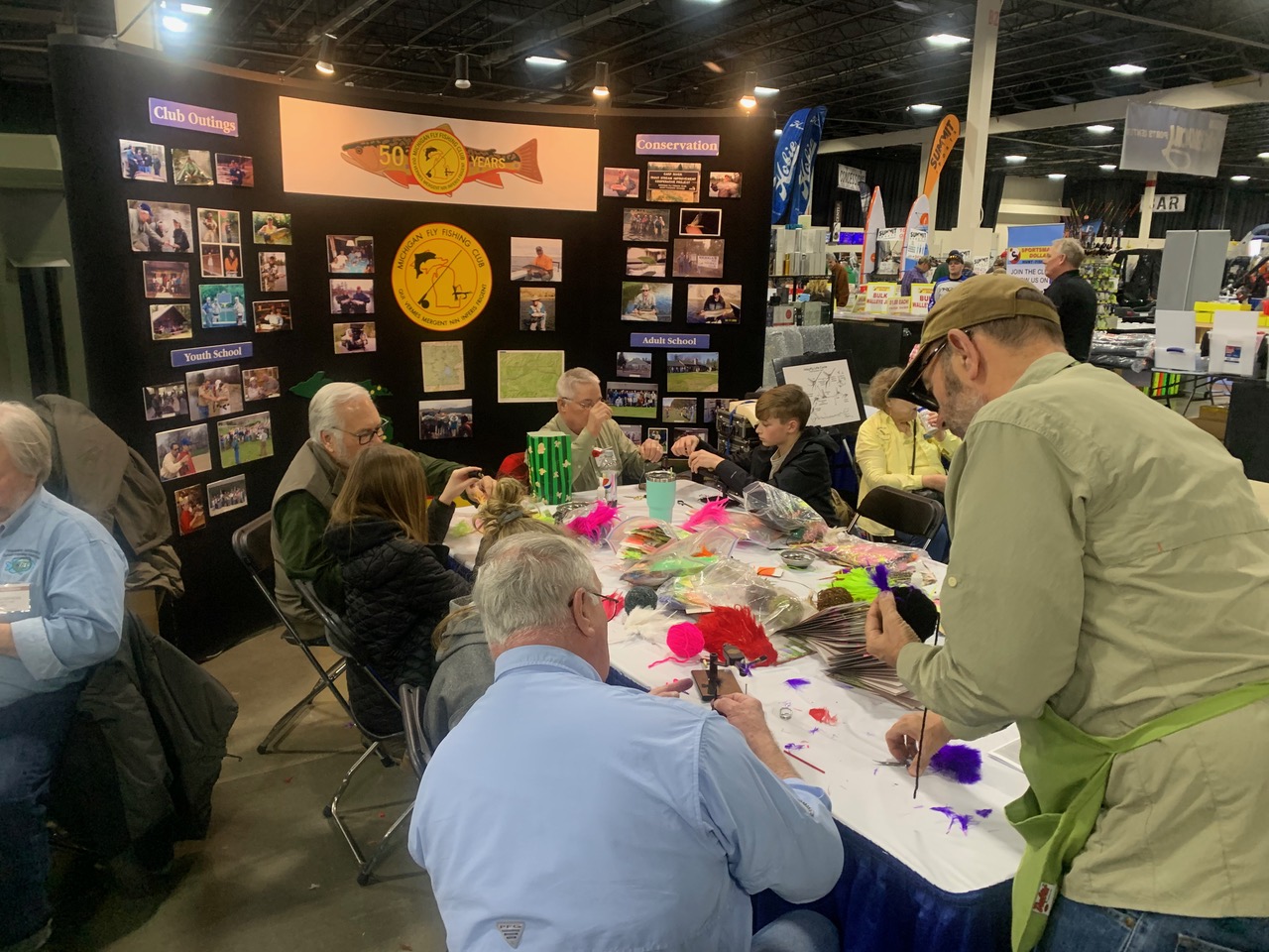 The MFFC hosts a youth fly tying booth at the Outdoorama. Attendees tie wooly buggers, then take them home attached to a Midwest Fly Fishing Expo flyer. It helps fulfill the Club’s mission of teaching the arts of fly fishing and it helps get the word out for the March show.
